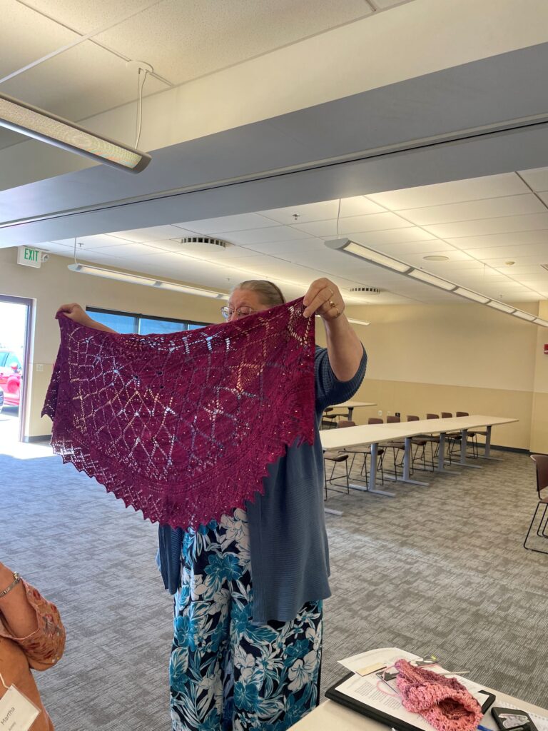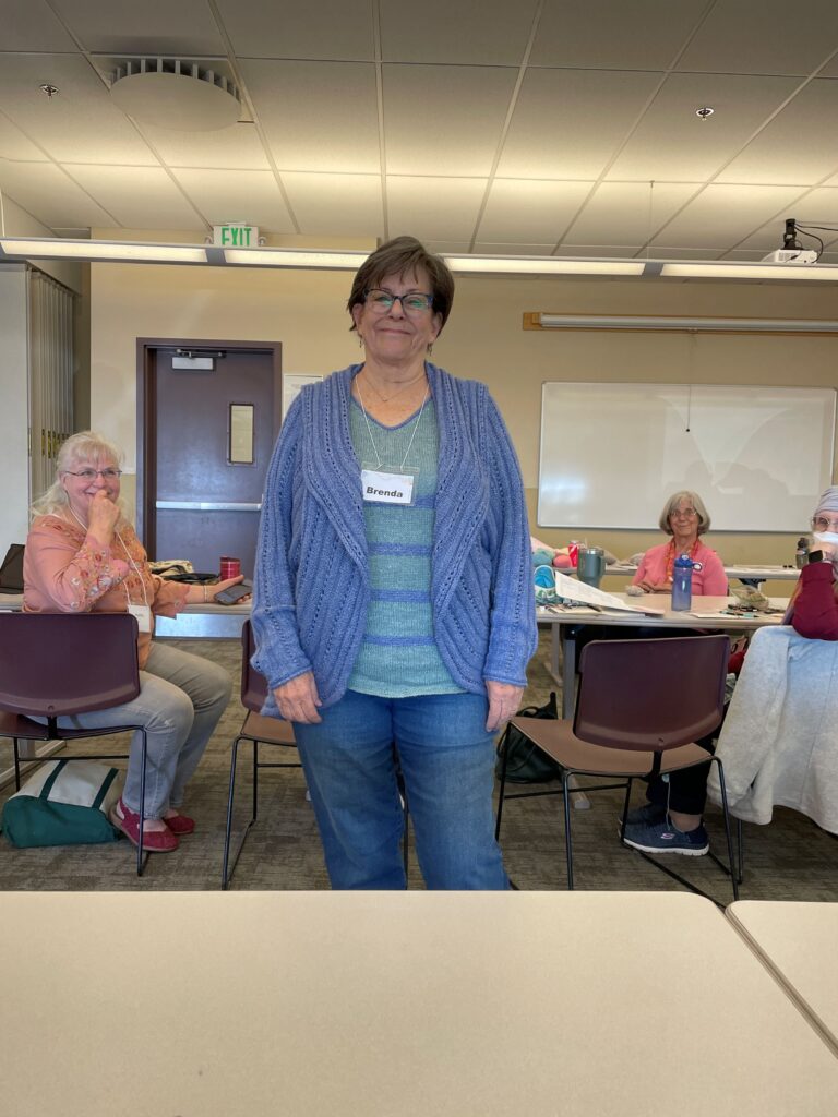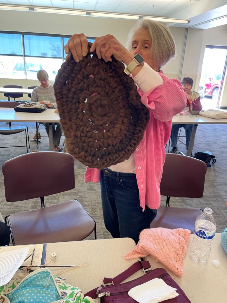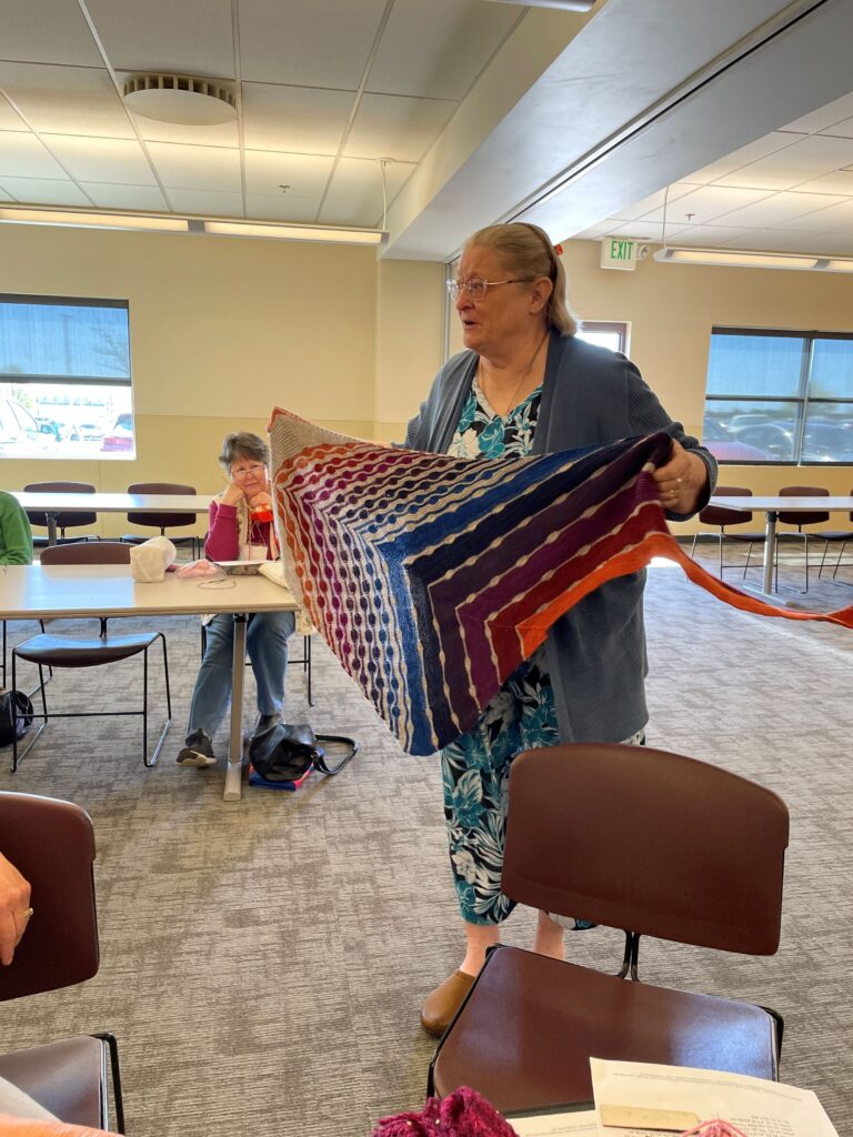 Our May 2025 meeting featured a presentation by Gretchen Hofer, our local Knitted Knocker representative.