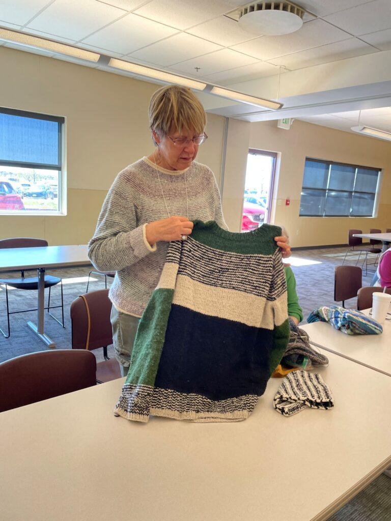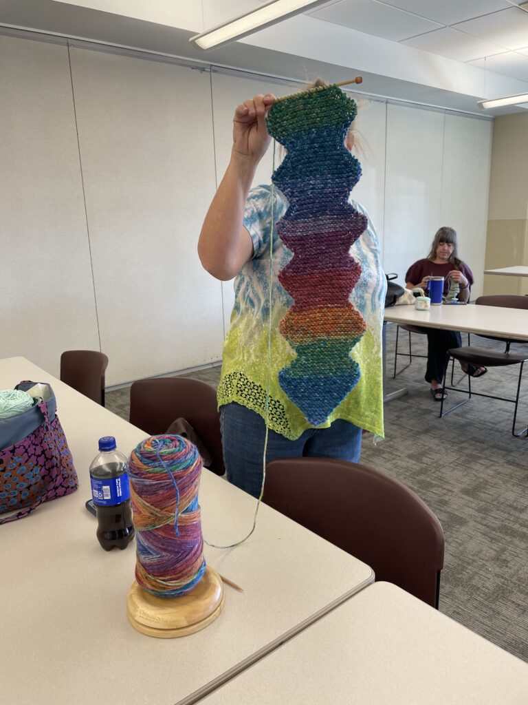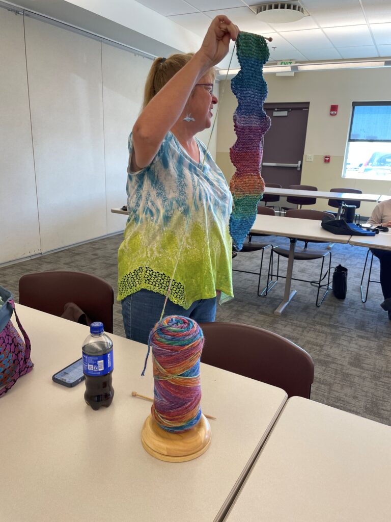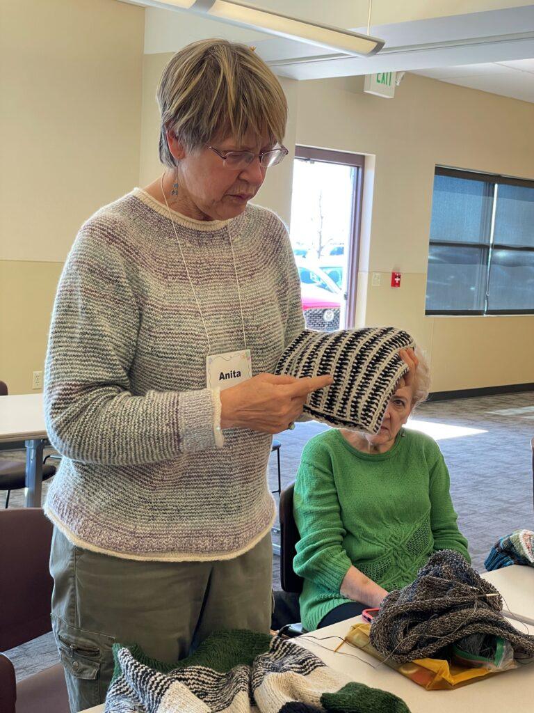 Our May 2025 meeting featured a presentation by Gretchen Hofer, our local Knitted Knocker representative.